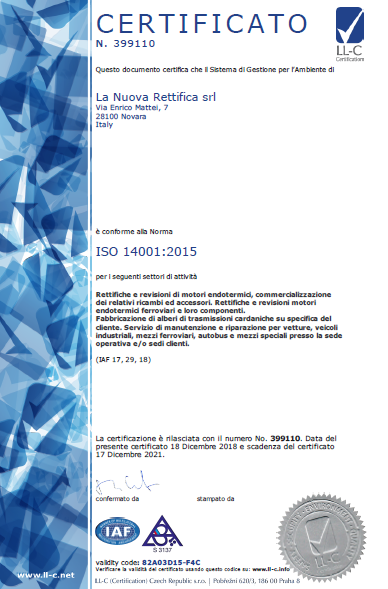 - ISO 14001:2015 (Sistema di Gestione Ambientale)
